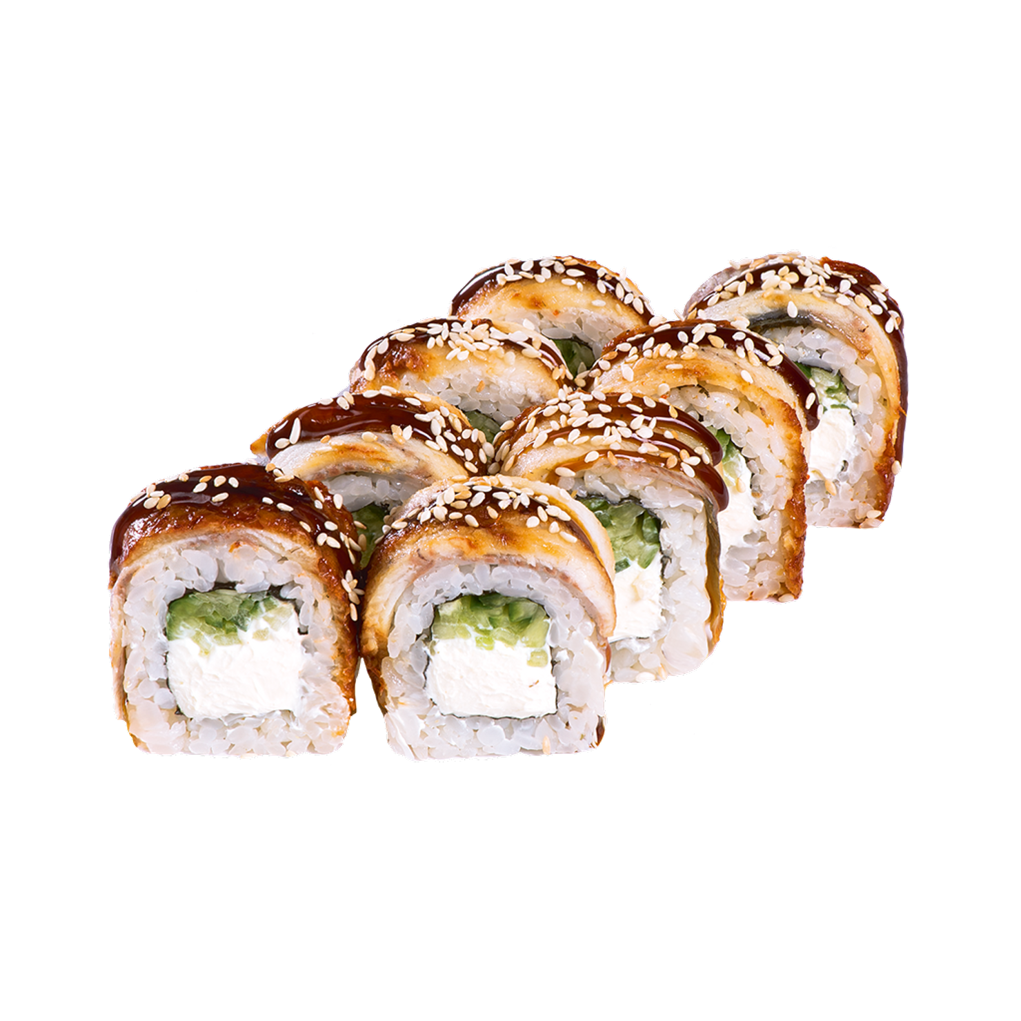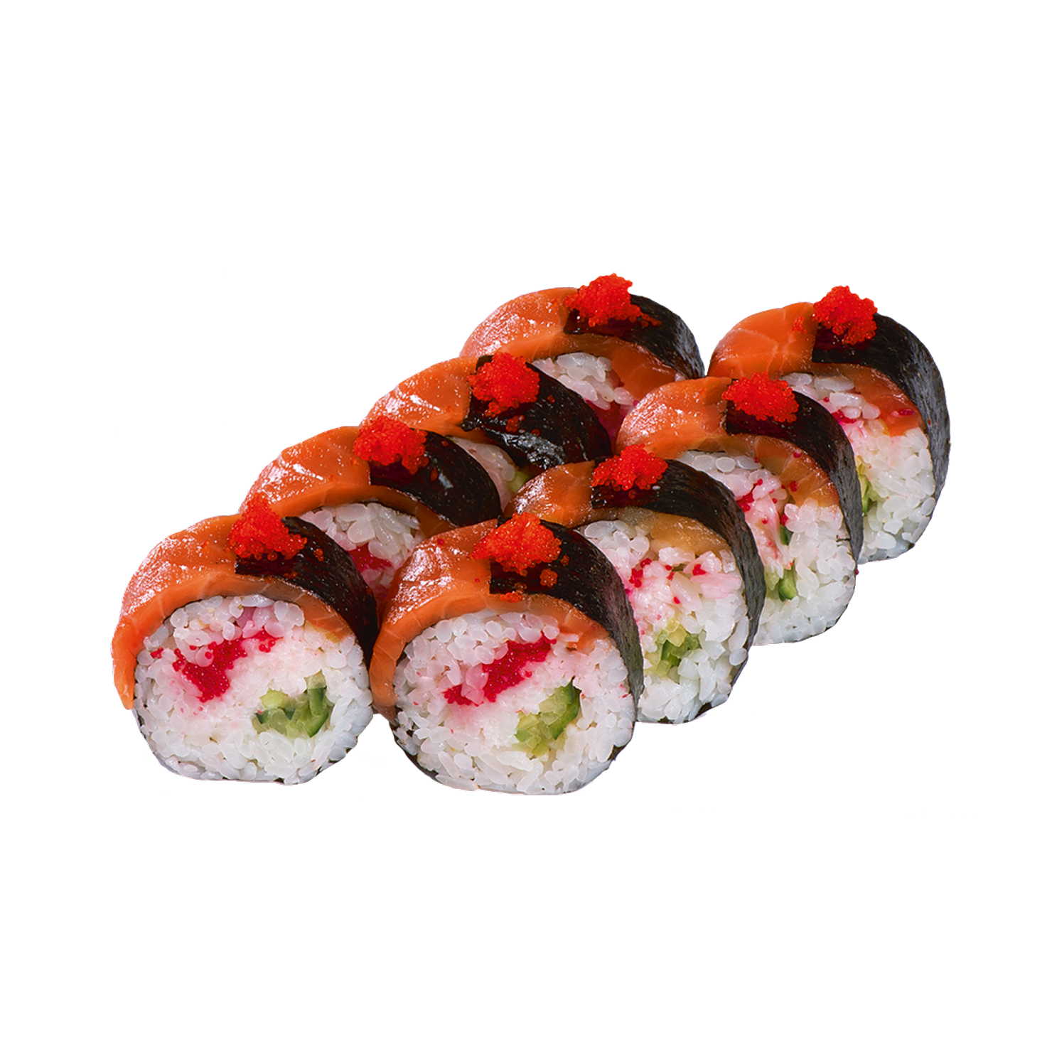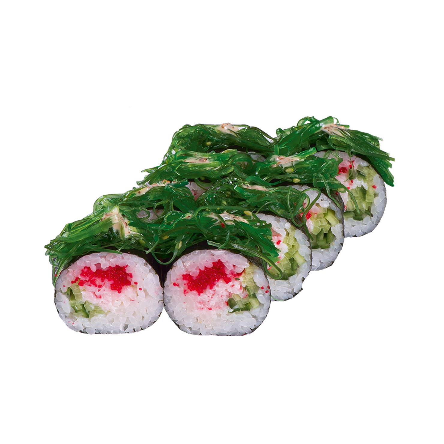 Снежный краб, огурец, икра масаго, чука, соус Ореховый.